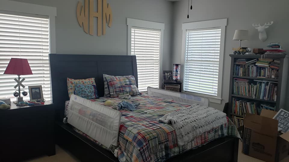 We service Statesboro too! Our client below received 2.5 inch Faux Wood Blinds with a cordless lift for child safety and Solar Shades on their kitchen windows so they are able to continue looking out while the kids played in the swimming pool.