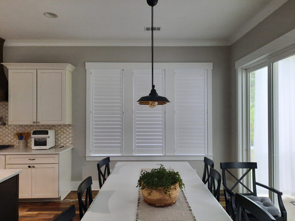 We are transforming a dining room into a timeless masterpiece! Our client desired a touch of elegance and versatile light control. That's why we installed Norman Woodlore Shutters in a crisp white color. A solution that marries aesthetics with functionality.