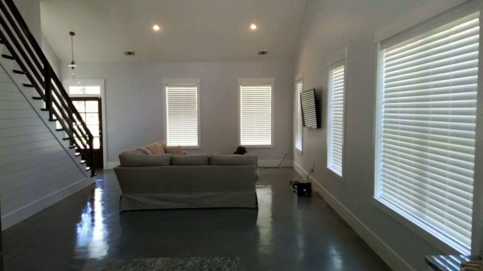 In this home in Port Wentworth, we recently installed new blinds. We designed custom fit 2" faux wood blinds for this custom built home. With added features like decorative valance and smart privacy this home is beautifully unique.